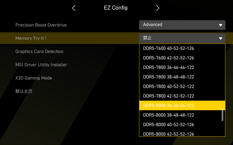 BIOS微星B850MPOWER的BIOS也做了定制主题,整体界面非常清爽,左上角可以快速开启Game Boost游戏模式、NPU AI Boost、内存EXPO,下方EZ Config有自动PBO选项、Memory Try It!预设超频选项、X3D Gaming Mode等,新机大部分需要设置的选项都可以一键开启。